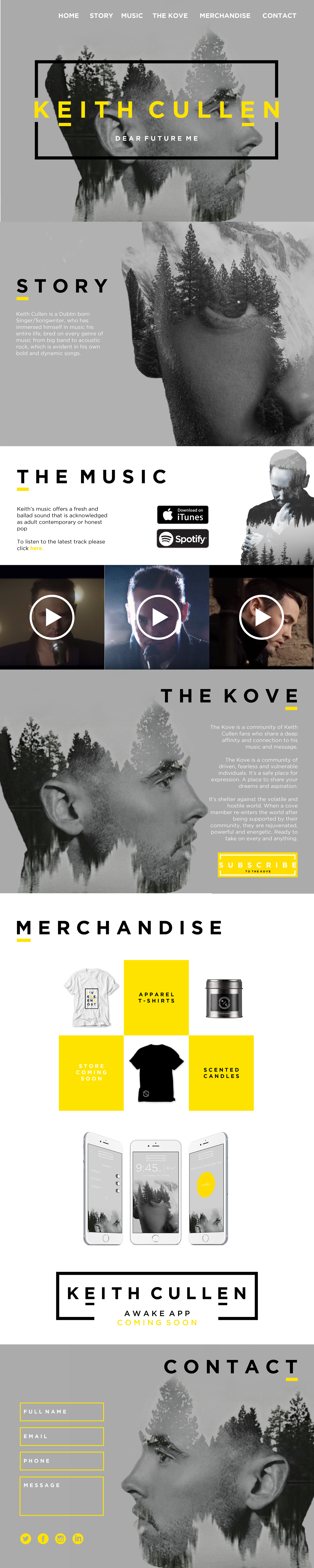 Keith Cullen is a Dublin-born singer and songwriter. The brief was to create an over-arching brand for Keith's album launch "Dear Future Me". This project show cases the website designed as one element of the brand. The site is consistent with the entire brand, giving an opportunity to incorporate all elements and promote merchandise, music and Keith's blog. PH+Co, 2016