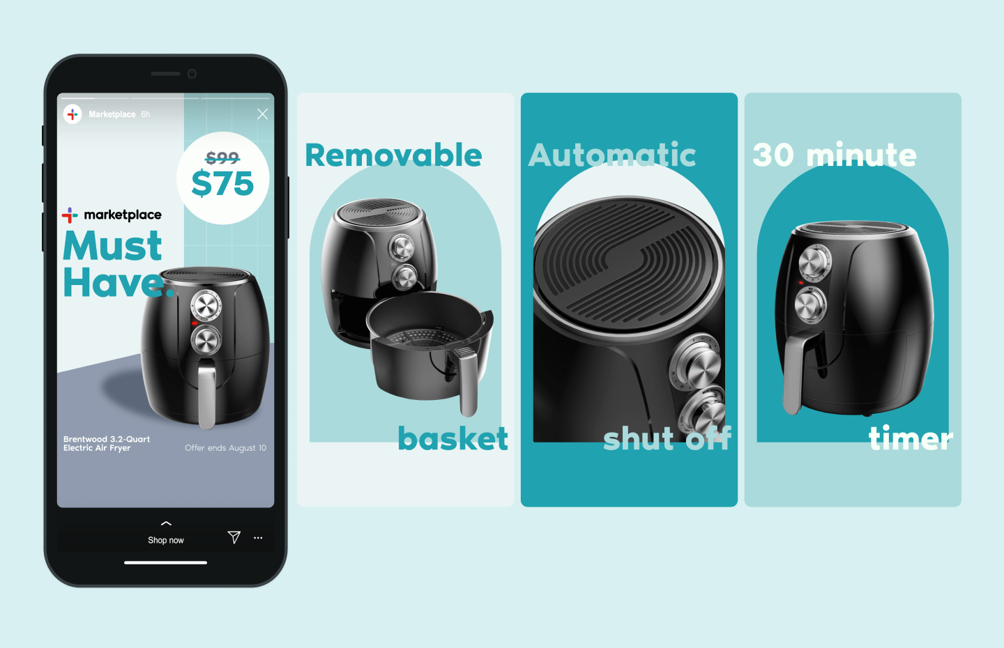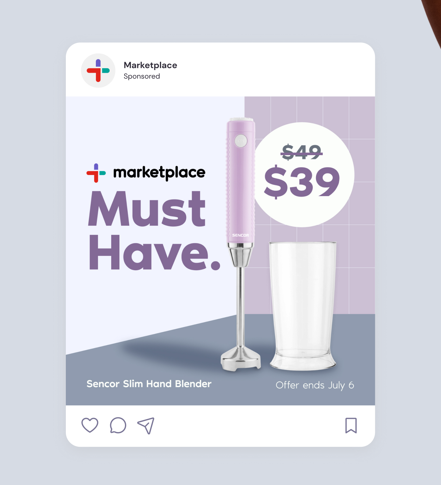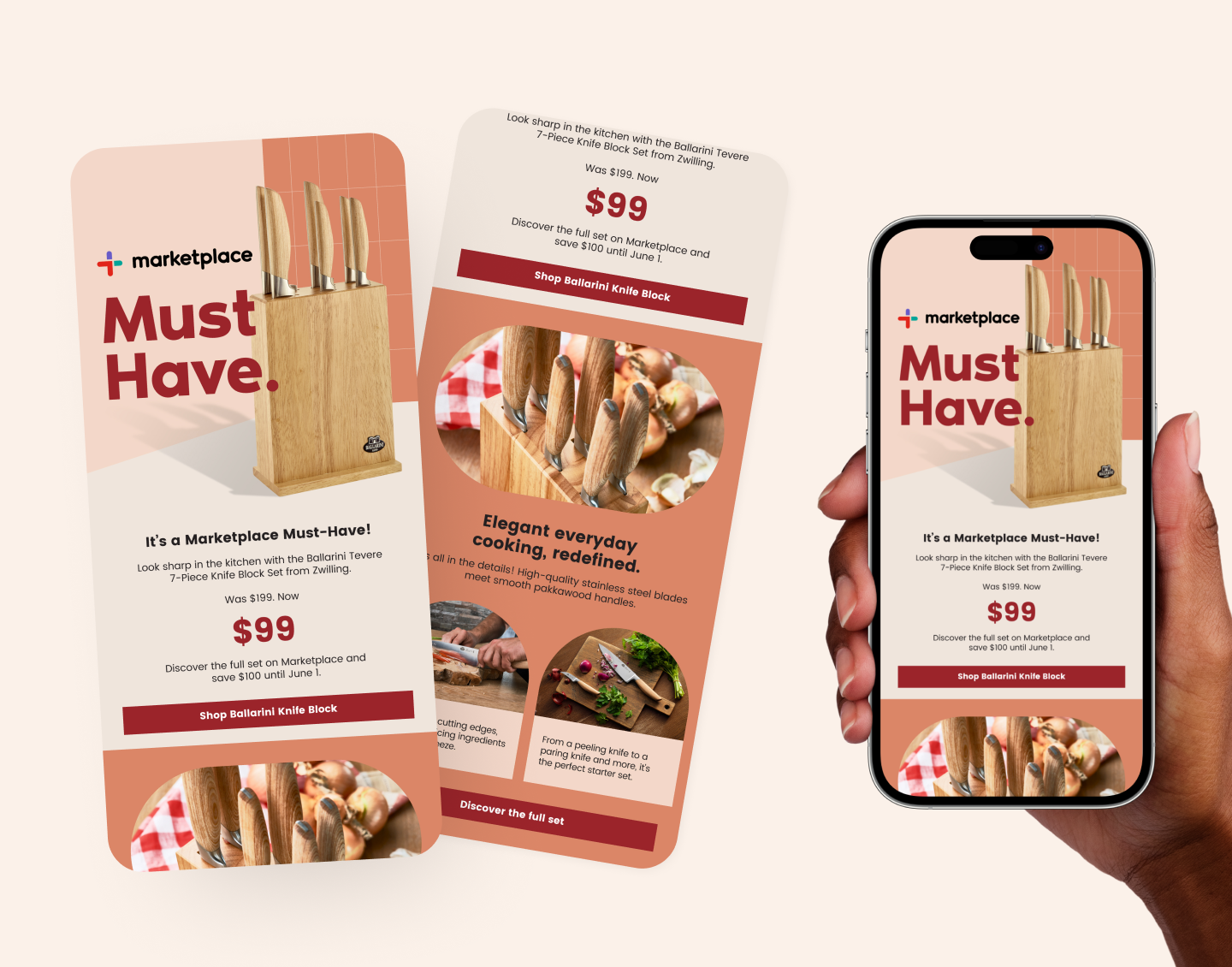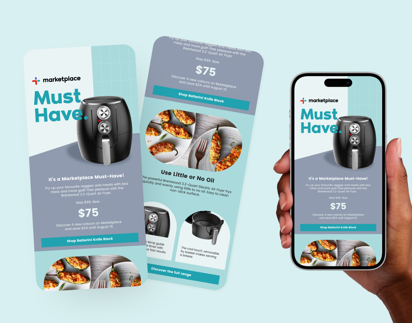 The solution was to create an environment that resembled a kitchen counter top and tile backsplash in which we could easily update depending on the product being promoted. As sole designer for the Marketplace team, my role involved defining the creative strategy for this new marketing initiative, creative direction, design and production of all assets.