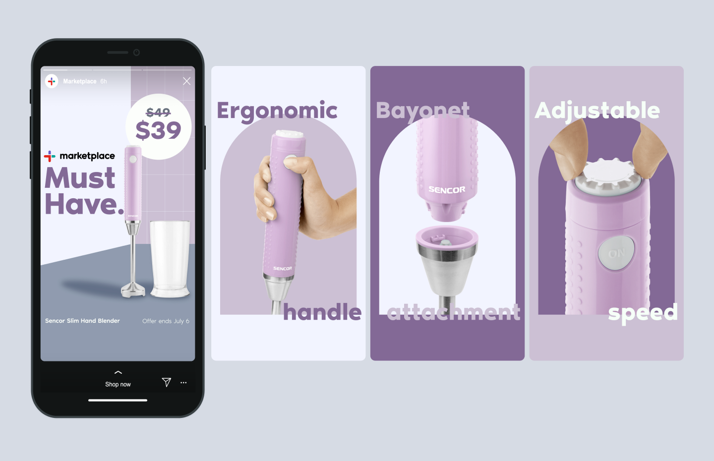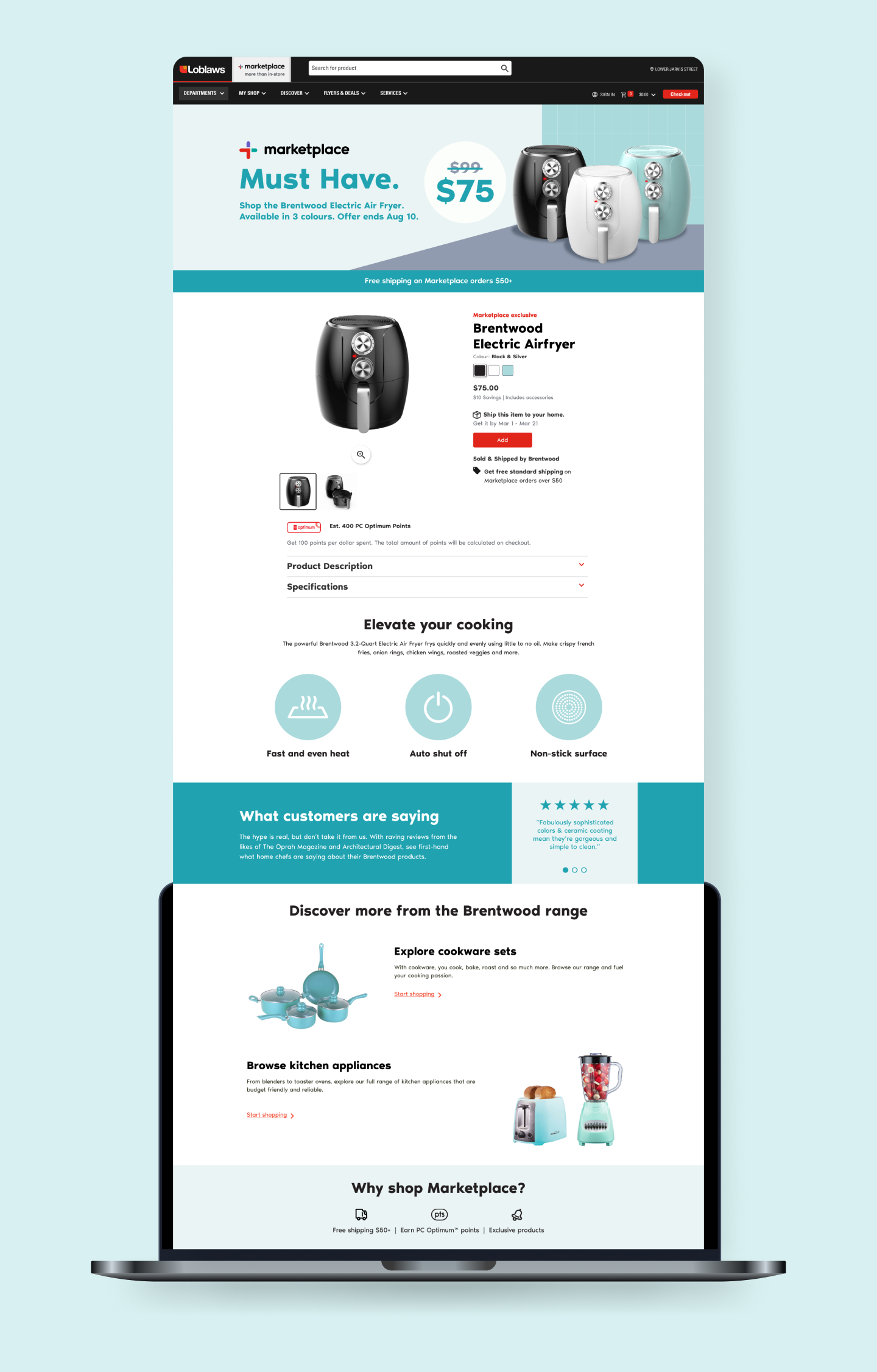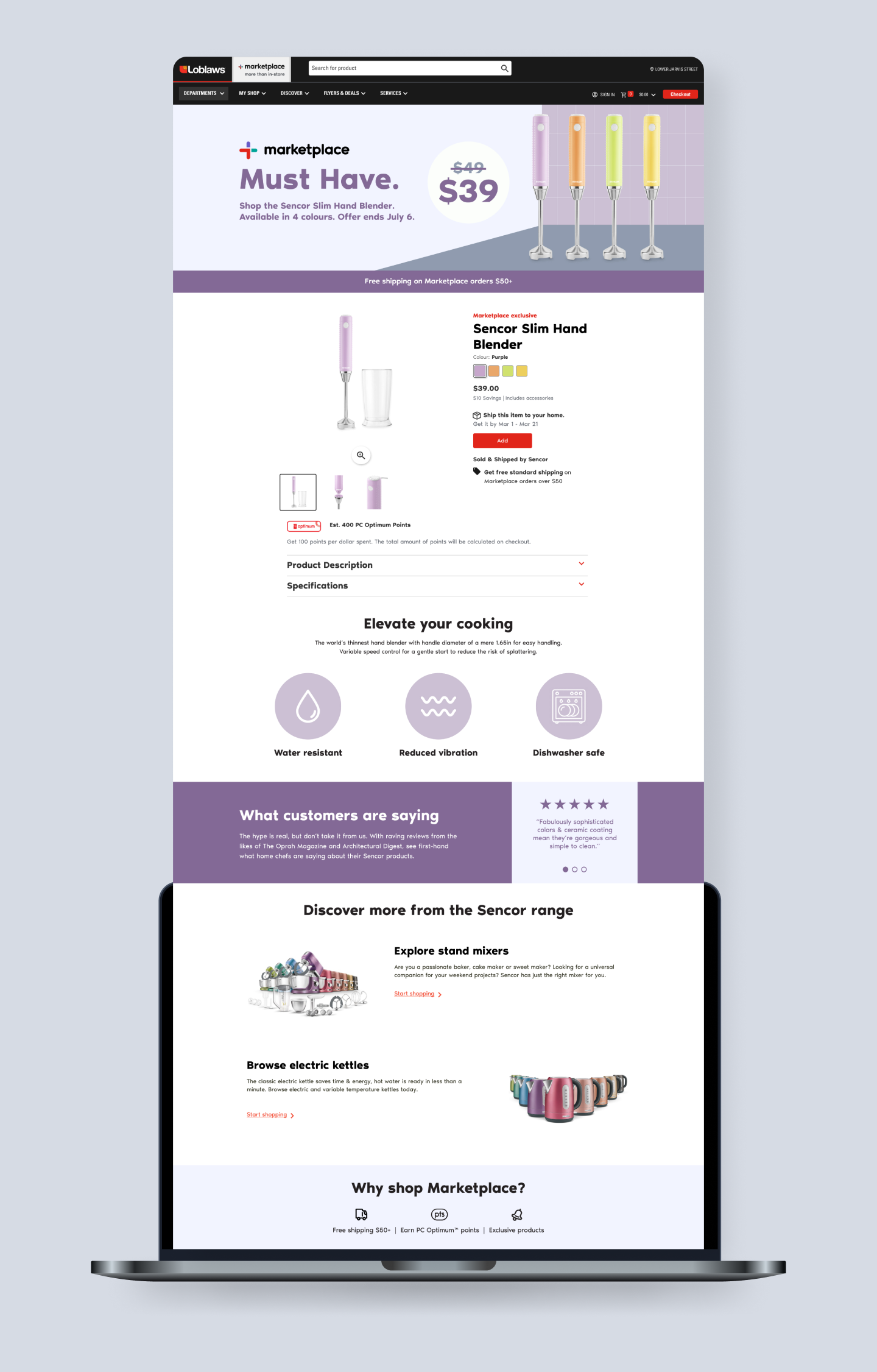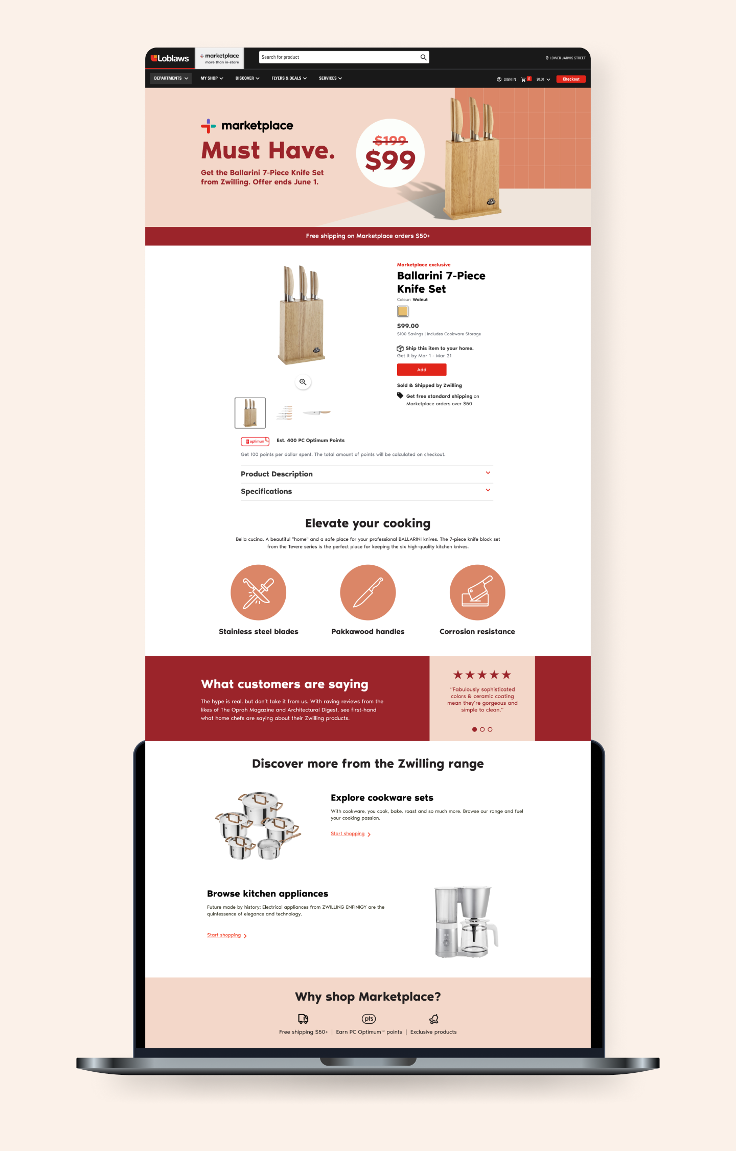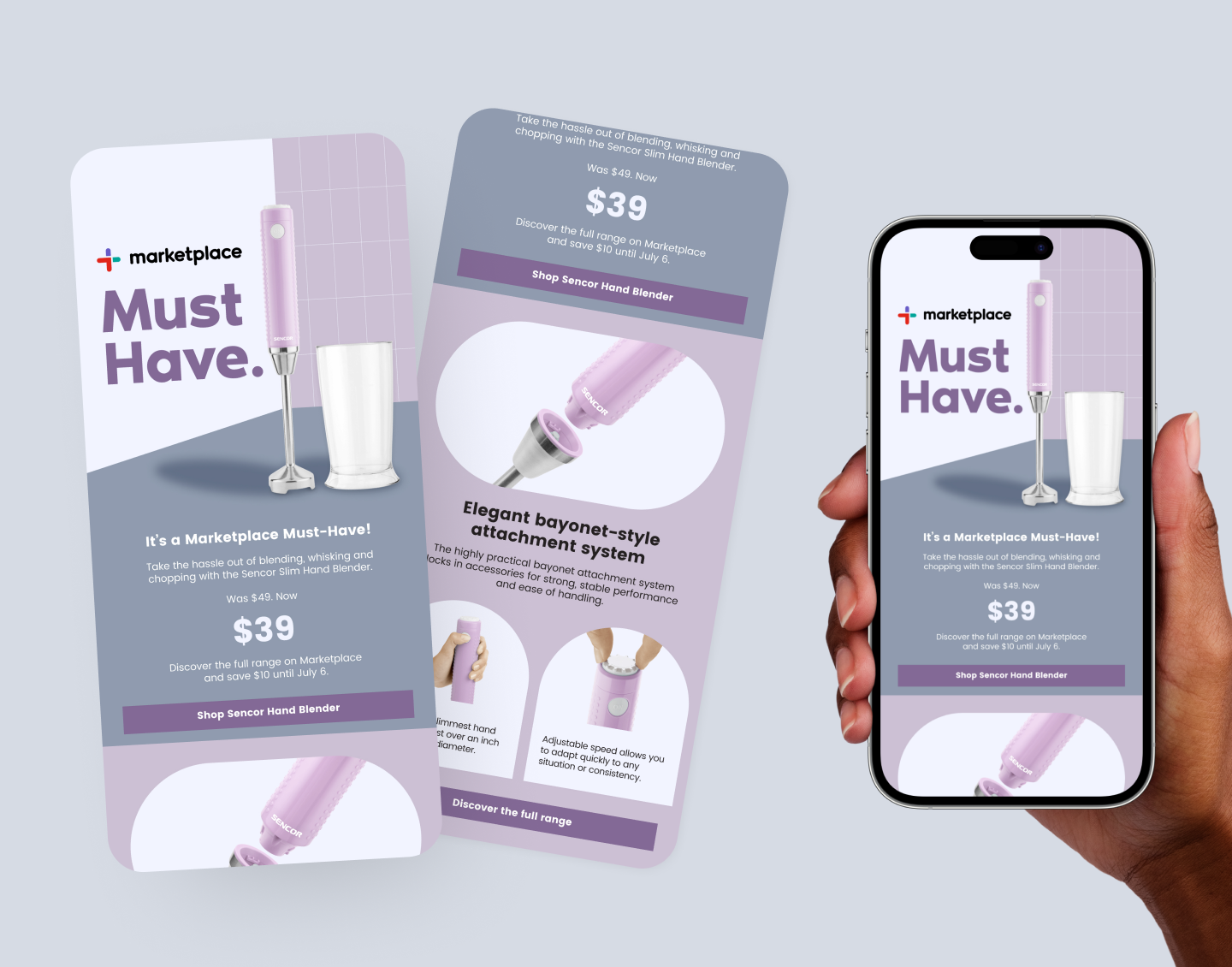 The solution was to create an environment that resembled a kitchen counter top and tile backsplash in which we could easily update depending on the product being promoted. As sole designer for the Marketplace team, my role involved defining the creative strategy for this new marketing initiative, creative direction, design and production of all assets.